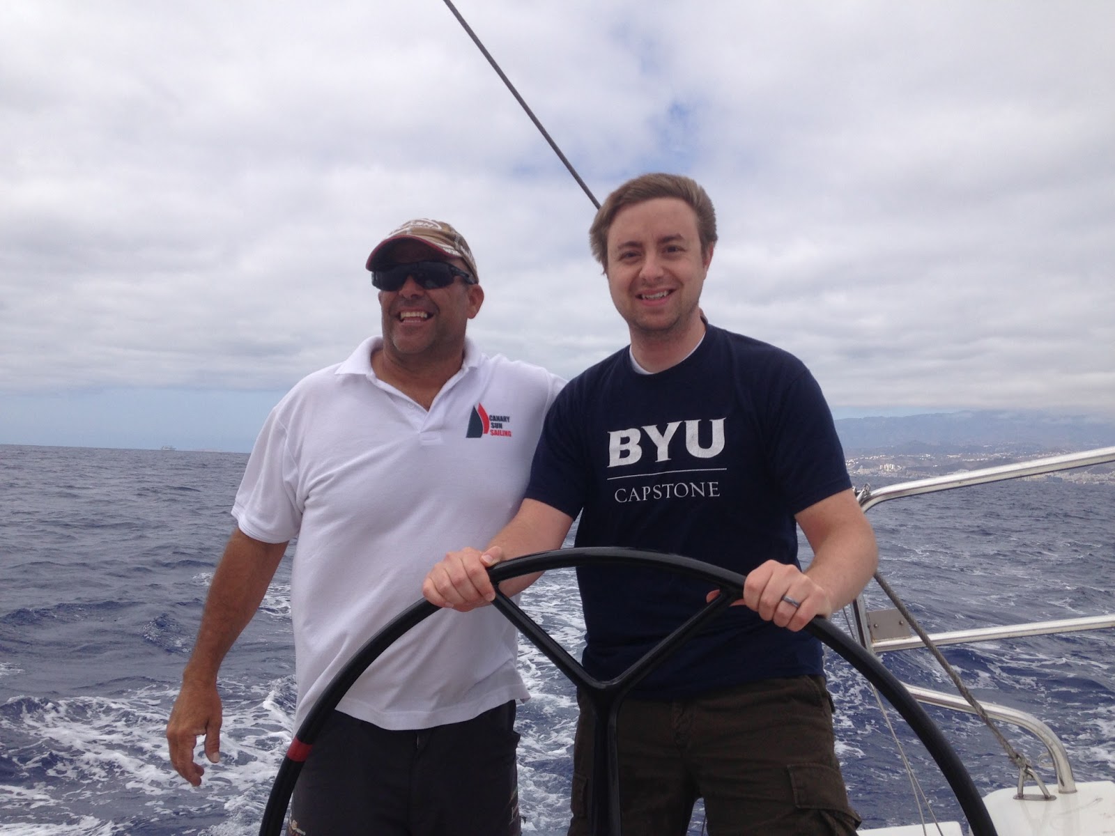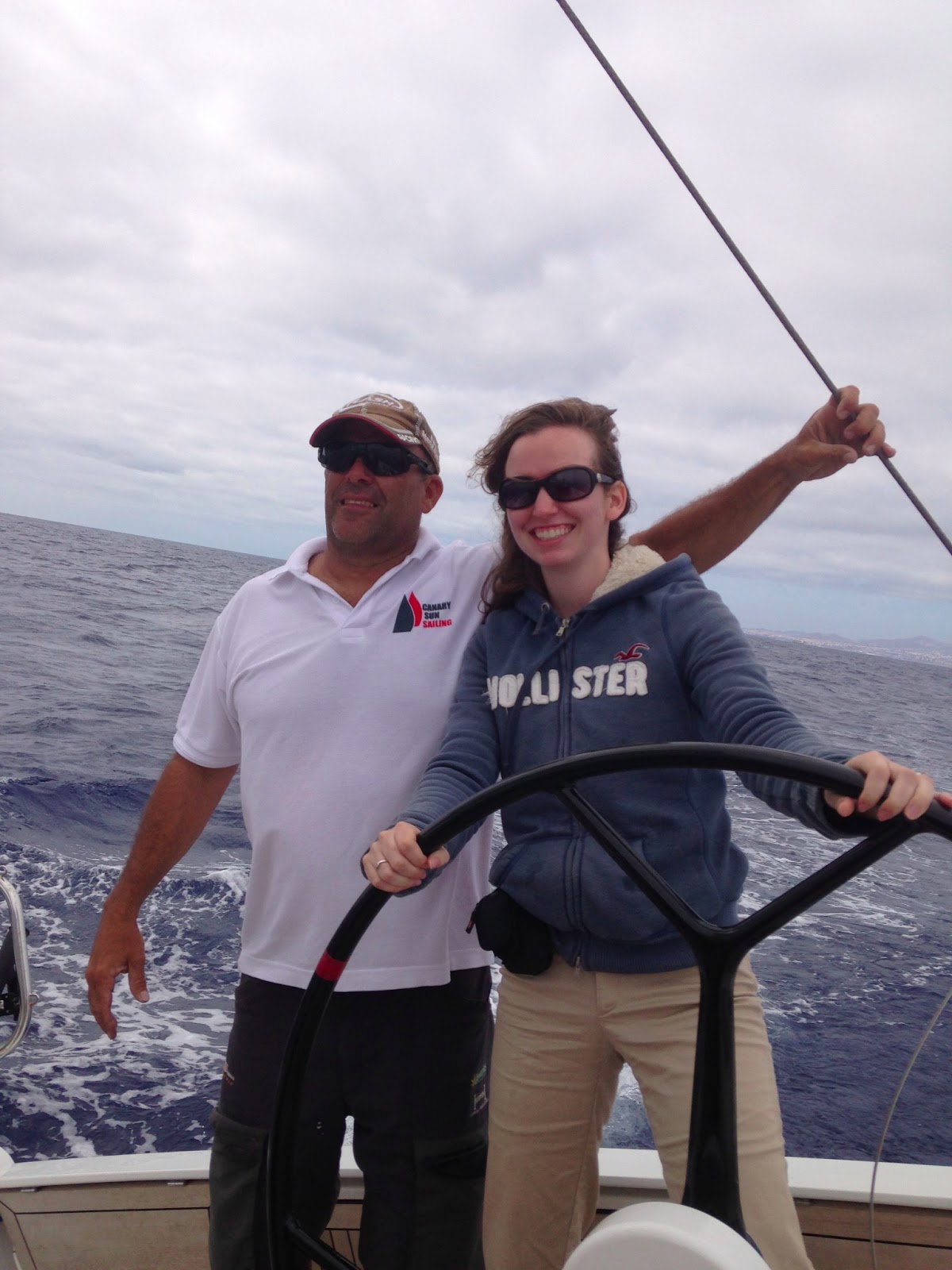 August started out with our son Rob and his wife, Katharine visiting us. We met them in Madrid, toured Segovia and then flew back to Grand Canaria. We took them sailing and it was quite the adventure!! We had 42 knot winds, big waves and so many memories!! Here is Katharine skippering through the tough conditions!!